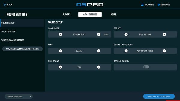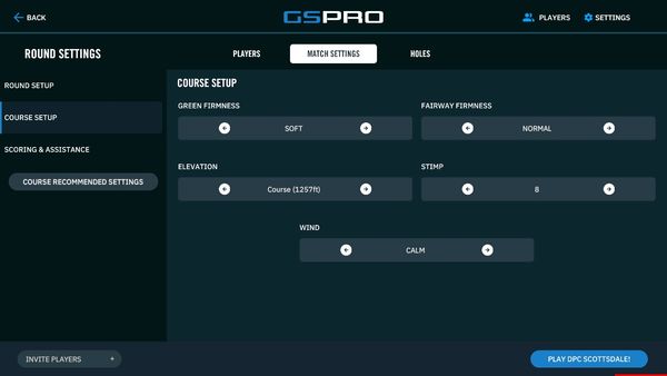 From the MATCH SETTINGS - COURSE SETUP tab: