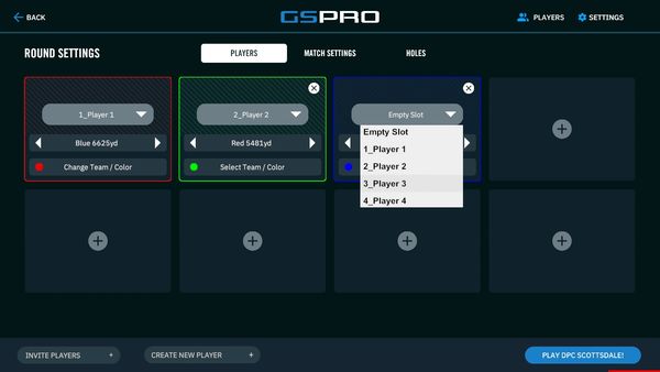 Add each player that will be playing in the round by clicking on the plus sign in the open box. To remove a player, select the "X" in the top right corner of the player to remove from the round.