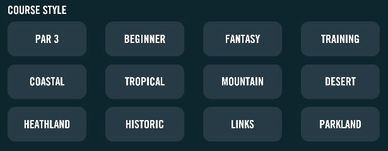 Choose a course based on the style you wish to play. Try a Mountain course for some elevated tee boxes or Costal to play along side the ocean. Choose Par 3 or Beginner for a shorter or less challenging round.